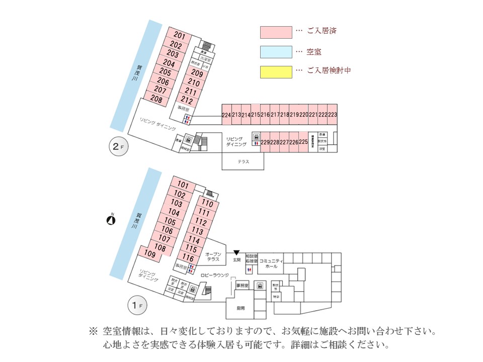 | 共用設備 | リビング ダイニング、共同キッチン、浴室、特殊浴室、洗濯室、応接室・相談室、健康管理室、ロビーラウンジ、コミュニティホール、Wi-Fi 接続 |