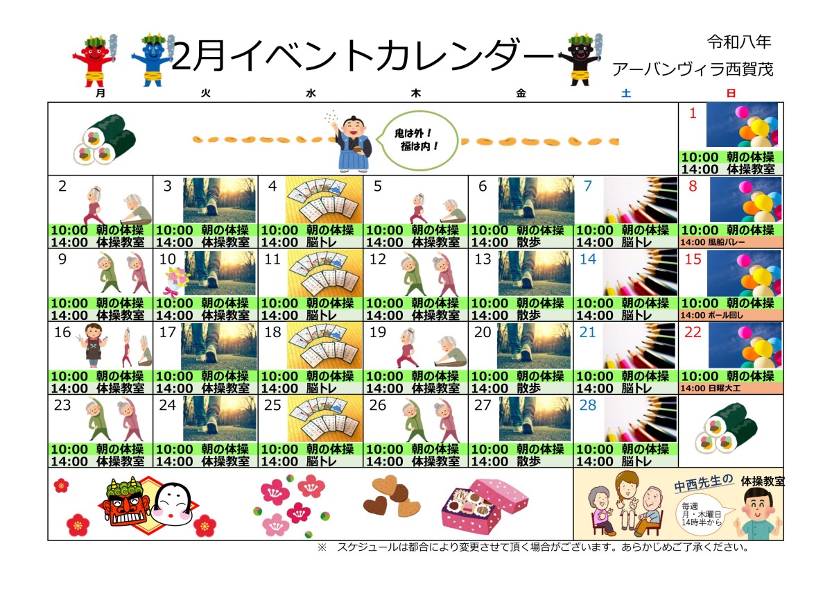 あん摩マッサージ指圧師の資格を持った機能訓練指導員が在籍しています。機能訓練指導員が考案した体操を楽しみながら、ずっと健康にお過ごしください。