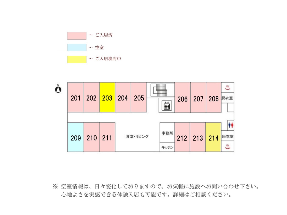 | 共用設備 | 健康管理室、相談室、コミュニティホール、食堂、リビング |