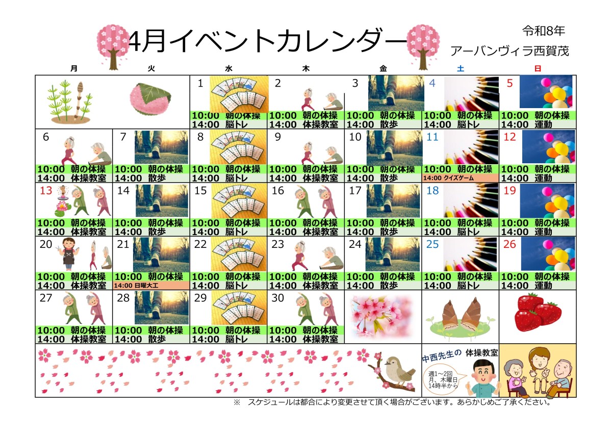 あん摩マッサージ指圧師の資格を持った機能訓練指導員が在籍しています。機能訓練指導員が考案した体操を楽しみながら、ずっと健康にお過ごしください。